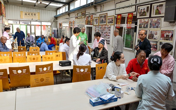 爱夕阳敬老院共有73位老人,其中半数以上行动不便。中医、内科、外科、心理、眼科、护理等不同科别的医生护士为老人们量血压、测血糖、听诊、检查身体。现场还进行了保健、用药等方面的指导,夏季预防褥疮宣教,检查结果及时向敬老院领导做了通报?;疃艿骄蠢显毫斓己屠先嗣堑幕队?/p>