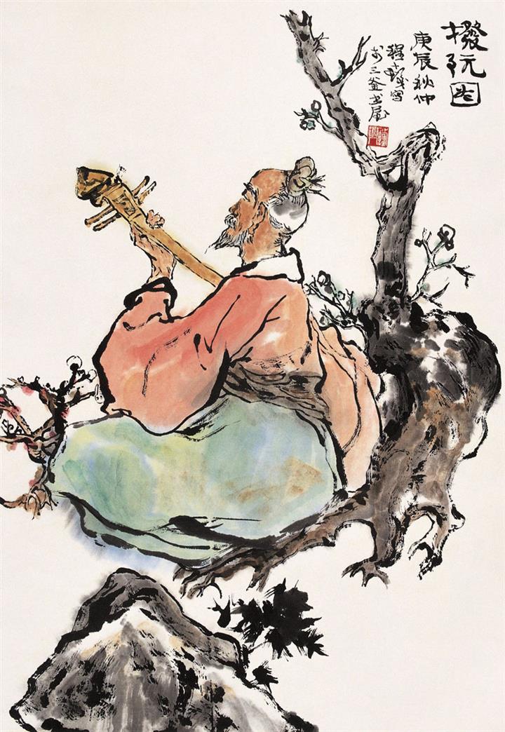 程十发最早主攻山水,之后相继以人物、花鸟闻名。他的人物花鸟画取法于梁楷、贯休、陈洪绶、任伯年诸家,并吸收民间艺术之营养,融会贯通,笔墨洒脱精湛,气韵生动,抒情而浪漫。他既继承传统,又超越古人。作品既有传统的笔墨,也不乏现代精神,非常具有中国特色,这在当代画家中也是独一无二的。