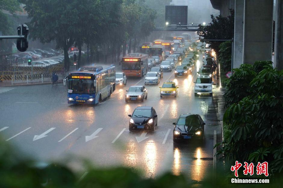 5月10日晨,一场雷阵雨局部大雨袭击广州,市区积水变成一片泽国。 中新社记者 柯小军 摄