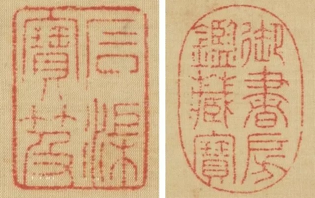 鉴藏印:乾隆御览之宝(4次)、嘉庆御览之宝(4次)、宣统御览之宝(4次)、石渠宝笈(4次)、御书房鉴藏宝(4次)