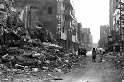 村民走过正在拆迁的街道。 京华时报记者陶冉摄