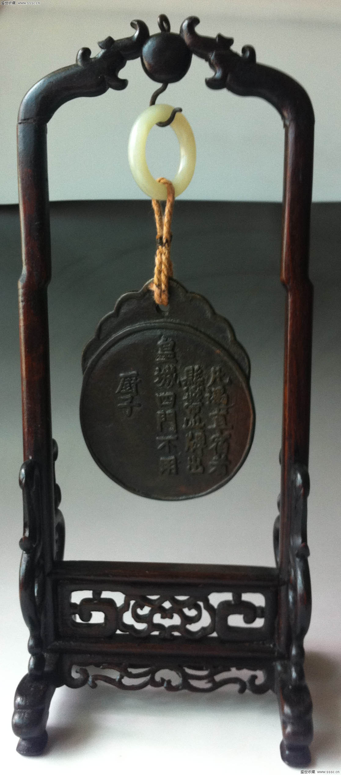 明朝的铜器有个最大特点,不管是黄铜还是红铜做的,都是发黑的黑里透点绿,绿里还透点黑。另外这个铜腰牌是圆的上头一个简化的荷叶盖,如果要再稍微远一点仔细观察,上头还有清晰的荷叶纹饰,这是典型的明代特征。
