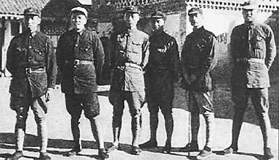 东征红军将领合影。左起(东征前的红军将领):左权、彭德怀、聂荣臻、陈赓、孙毅、聂鹤亭