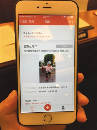 儿童失踪信息发布平台上线 试运行2天解救1女孩