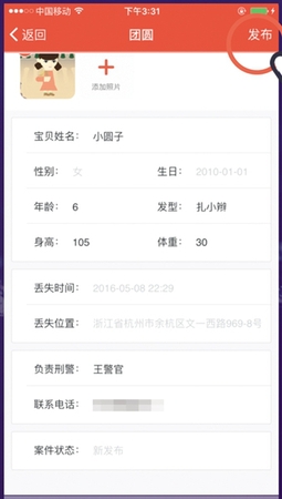同时,在儿童失踪后,通过新浪微博和高德地图,将会自动推送到儿童走失地附近范围内的手机用户上。