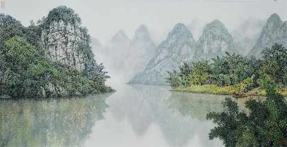 《漓江秀色》 70cm×137cm 2016年 纸本