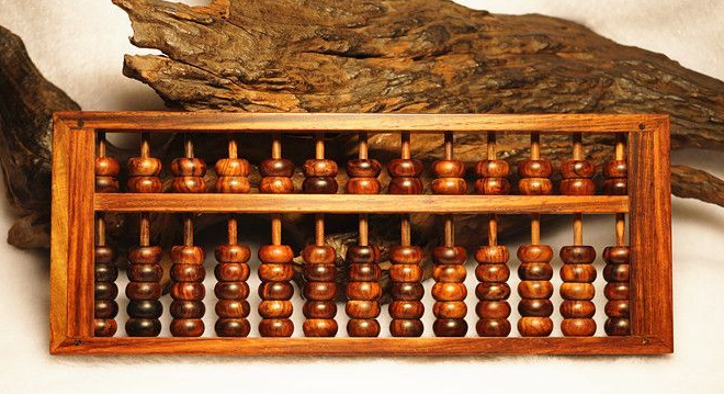 因红木质地坚硬,经久耐用,制成的边框或算珠,轮廓圆中有方,不仅美观,拨起来声音清脆响亮,轻巧灵活,非常实用。加之算盘制作,采用的是精密 巧妙的榫卯工艺,木料的榫头和榫眼,结合牢固,严丝合缝,是算盘中的精品,因此这把红木算盘价格也一直居高不下,最少在千元以上。