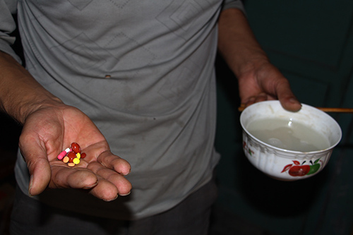 吃了9年的抗病毒药,杨守法怀疑自己的身体因此跨了。虽然确诊没得艾滋病,但他却需要吃一系列的药来治疗自己的其他疾病。