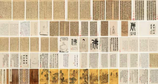 佚名 唐贤写经遗墨并近代诸家诗画册页(二十一开,另附近人诗画十八页) 水墨纸本、金笺尺寸不一 写经:约 24.5 × 14 cm(每幅)跋文:约 23.5 × 10.5 cm(每幅)成交价:RMB 57,500,000