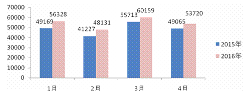 图3 2016年1-4月价格举报量同比增长趋势一览