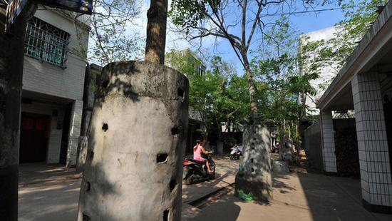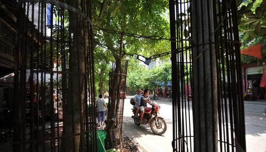 除了钢筋,对于比较珍贵的成材花梨树,还有人用水泥累成近2米高围墙护树。