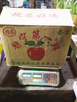 苹果箱称重近6斤 西部商报记者 李东朝 摄