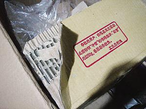 5月18日上午,记者在兰州五泉市场采访发现,标有“水晶红富士”和“中国·甘肃·静宁”等字样苹果箱同样很多,记者撕开一只纸箱夹层,果然看见也有形似水泥浆的填充物。摊位老板告诉记者,他和市场里多数商户的苹果也是从大青山蔬菜瓜果市场里批发的,批发时,都是整件进货,在该老板的配合下,记者称重发现,一只印有“水晶红富士”的苹果纸箱重4.5斤,夹层里也有水泥状填充物。