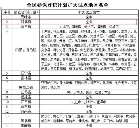 人社部将扩大全民参保试点 确定河北省等27个地区