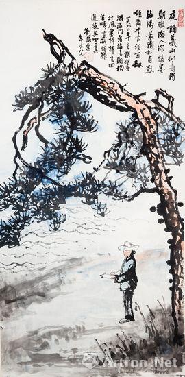 《看海听松图》是1982年刘海粟和夏伊乔一起到海门写生,即兴所画。画中赋诗一首:“夜诵义山似有得,朝暾容入深情墨,海涛最识松贞烈,颂尔无言经百劫?!辈⑻庥小耙痪虐硕甓滦燎怯魏C?,看海色、听松风,尽情挥毫,回首畴昔,感怀难遏,乘兴写真。刘海粟,年方八七”。而画中那位写生者就是夏伊乔。诗中所写“义山”是唐代著名诗人李商隐,虽才气过人,但因“牛李党争”在政治上备受排挤,一生困顿不得志。海老一生艺术成就辉煌,但也多经劫难,难怪有感而发。夏伊乔幼年随父旅居印尼,抗战期间海老为抗日救国到南洋举办赈筹画展,她被他的艺术成就和开拓精神所折服,爱慕至深,毅然放弃安逸的生活,追随刘海粟至上海,结为百年之好。在共同度过的半个世纪中,她以韧如蒲苇的不屈毅力伴护着不断遭受冲击的刘海粟,不离不弃、无怨无悔。有她的悉心照料与关怀,年逾古稀的刘海粟安然度过了人生的低谷,并在三次中风后重新站起,再次迎来生命与艺术的春天。难怪海老在诗中,自比海涛,将她比作青松,赞誉青松“贞烈”、“无言经百劫”,这无异是对爱妻的最高评价。