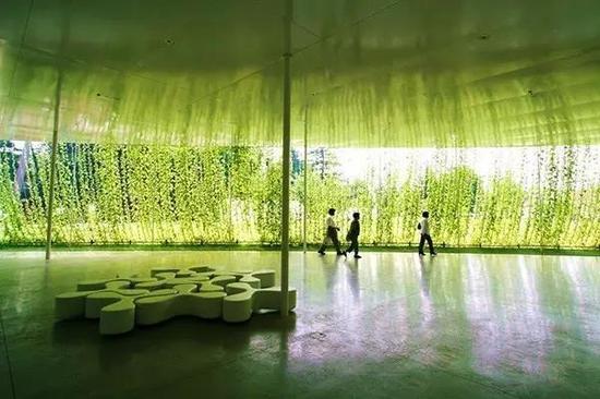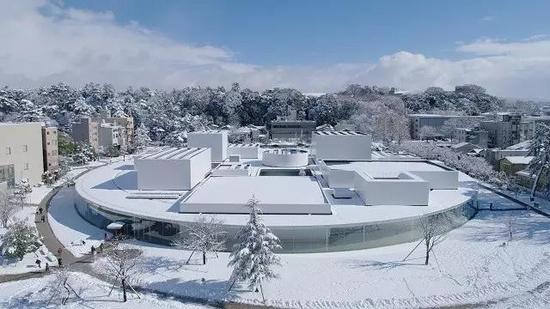 说到金泽美术馆,恐怕是设计者的名头更响。2004年,妹岛和世与西泽立卫成立的SANAA建筑设计事务所就凭借金泽21世纪美术馆赢得了当年的威尼斯建筑双年展的金狮奖。美术馆整个馆体采用了白色,通体简洁明快,天花板和地面采用的反光材料,削弱了建筑的上下的界线。一圈的透明玻璃使馆体与外界互通,并有了很好的采光。