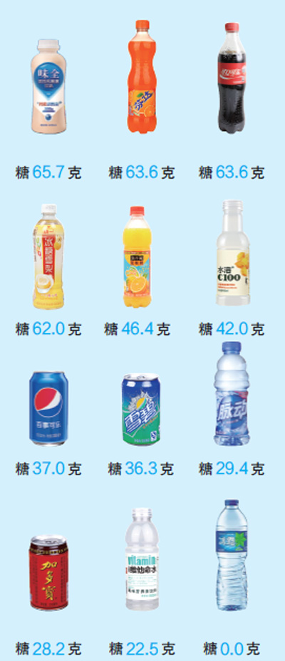 记者在市面上购买了12款热销饮品,通过营养成分表计算出其中的含糖量。