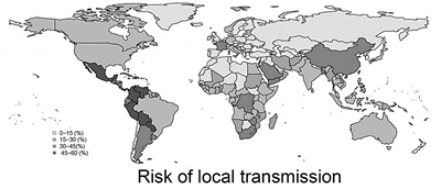 研究人员发表在学术期刊《Peer J》上的论文指出,与巴西联系密切的国家传入寨卡病毒的风险尤其高,那些有登革热及其它蚊子传播疾病史的热带、亚热带国家,一旦有病毒传入,传播风险最高。这意味着南美、中美以及加勒比海地区的许多国家面临最高的传染风险,应采取措施预防蚊虫叮咬。