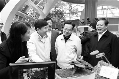 广西壮族自治区主席陈武(右二)到广西农业科学院调研。