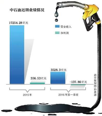 近年来,由于石油市场大幅下滑和公司生产成本较高,中石油业绩骤降,今年一季度净亏损137.86亿元,跃居今年一季度上市公司亏损额之冠。与此同时,中石油债务高企,截至一季度末总负债为1.057万亿元。