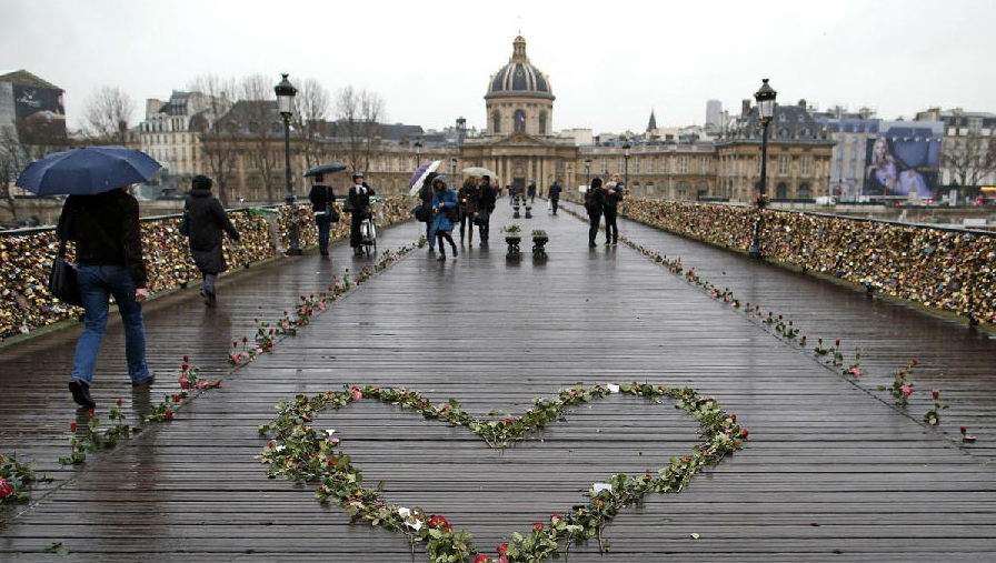 2015年,巴黎艺术桥上的一段栏杆被锁压垮后,市政府官员决定移除所有的爱情锁,恢复塞纳河的景观。2015年,巴黎艺术桥上的一段栏杆被锁压垮后,市政府官员决定移除所有的爱情锁,恢复塞纳河的景观。