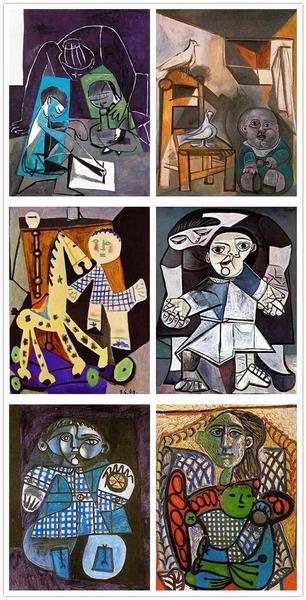 克劳德和帕洛玛都是毕加索与同居情人弗朗索瓦丝?吉洛特所生,认识吉洛特时,毕加索62岁,吉洛特21岁,她当时还是个青年女画家。在他们同居时期,可以说一家四口,幸福美满,从一些流传下来的照片上看,充满了生活的情调,同时,毕加索为他们创作了一大批风格各异的作品,艺术家的情感满满一缸。