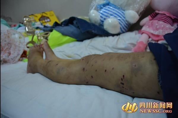 5月30日上午,娟娟的班主任林老师像往常一样来到学校上课。然而在上课时,她发现坐在第一排的娟娟目光呆滞,并且有意无意的用书本将自己的脸遮住。当她正要走到娟娟面前示意提醒时,却发现娟娟的脸、脖子、手臂有不同程度的伤口??悸堑骄昃甑那榭觯掷鲜β砩舷蜓W髁嘶惚?。不久,娟娟的伤情引起了当地乡政府和辖区派出所的重视,她被立即送往了大竹县人民医院救治?!〖钦摺∮嗫蟆⊥计丛矗核拇ㄐ挛磐?/span>
