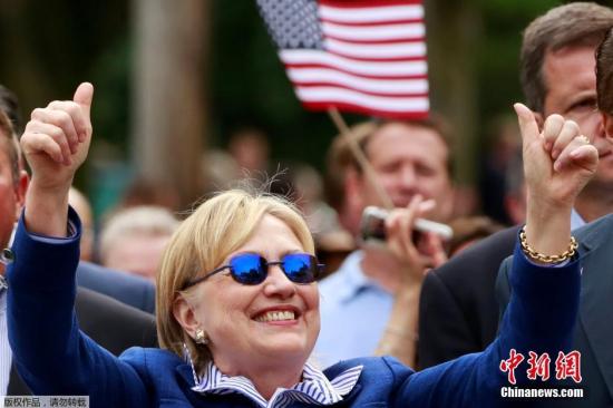 资料图:当地时间2016年5月30日,美国纽约州查帕瓜,美国民主党候选人希拉里参加美国阵亡将士纪念日游行。