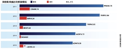 美邦盈利状况每况愈下。2011年,美邦净利为12.06亿元,此后一路下跌,至2014年,净利只有1.4564亿元。2015年更是出现了4.3192亿元的亏损。