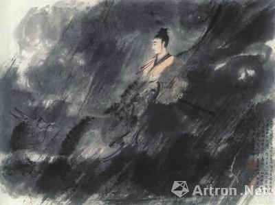 傅抱石年轻时就有屈原情结,他取名“抱石”,就是“屈子抱石”之意。1942年,傅抱石壬午画展在重庆举行,大量作品与屈原和《楚辞》有关。1954年,傅抱石创作了他一生中最重要的两幅同名人物画作品《云中君和大司命》,既成全了傅抱石自己的水墨理想,更成为20世纪中国美术史的标杆。这件作品曾参加《二十世纪中国绘画展》、《纪念傅抱石百年诞辰作品展》、《傅抱石百年大展》等重要大展。今年3月,《云中君和大司命》与吴冠中大尺幅油画《周庄》一同出现在北京新保利大厦,引起藏界轰动。在其后举办的保利香港2016春拍中,吴冠中《周庄》以2.36亿元成交,创中国油画全球最高拍卖纪录。
