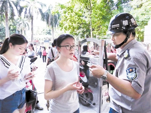 严格的安保措施为高考护航?!∧夏肀钦呃涤泄狻∩?/p>