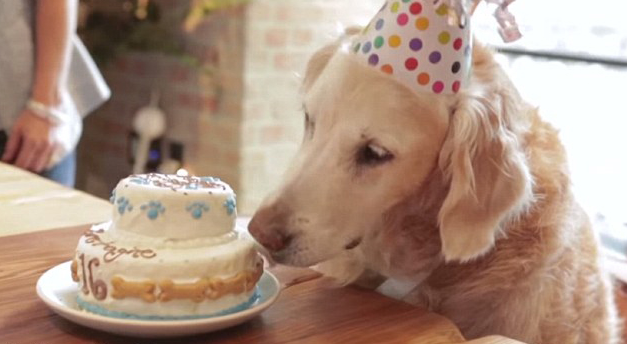 Bretagne在2008年从搜救岗位上光荣退休,退休后的它也一直被人们当作英雄看待。图为它16岁生日时,主人为它买了生日蛋糕庆祝。 图片来源:综合