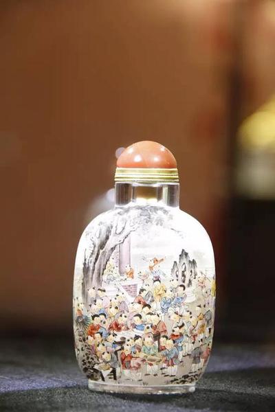 张铁山是秦派内画创始人,《百子图》上百个小娃娃都十分可爱,或玩耍,或书画,服饰神态均不重复。细致入微的笔触,精湛的内画技艺,实在让人叹服。
