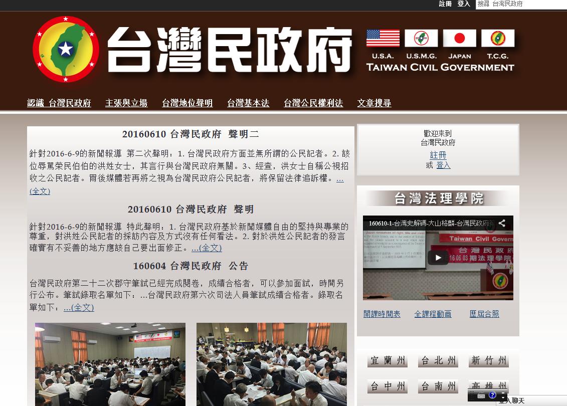 据了解,台湾民政府(英文:Taiwan Civil Government,简称TCG),或是写做台湾(民)政府,是一个主张台湾系由美利坚合众国军事占领、宣称自己拥有合法地位统治台湾的民间组织,前身为台湾平民政府筹备会。
