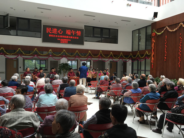 6月8日上午,民进上海市委会联络委员会和民进普陀区委会赴普陀区社会福利院举办“民进心 端午情”慰问演出活动,图为活动现场。
