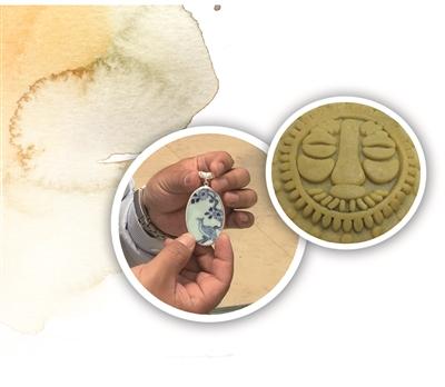 为了收集碎瓷片,他经常去施工工地转悠,像个考古人员似的,分析文化层、翻找出土遗物。几年下来,他的床下已经积累起了成吨重的瓷片。他还进行分门别类,将纹饰比较完整的瓷片挑选出来,作为制作挂件的原材料。