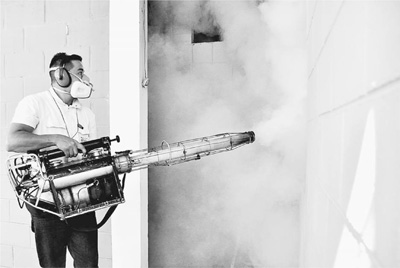 在中美洲国家萨尔瓦多的首都圣萨尔瓦多,一名男子进行烟熏灭蚊,以遏制寨卡病毒传播。新华社发