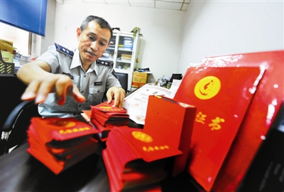 不过,张怀亮拥有更多的还是现在的献血证,上面写着“献血光荣,无私奉献”,纸质也要好得多。1997年,北京城管成立后,张怀亮就被调来,成为了北京首批城管队员,在这之前他献了两次血,成为城管队员后,他通过单位组织又献了4次?!霸吹ノ幌籽加兄副?,在之前那个单位,本单位员工不是说想献就献的,他们有别的办法完成指标。在城管则是采取自愿报名?!闭呕沉了?,当时城管队宣传献血,就有队员报名,“如果人数够了,我就不报了,如果人数不够,我就一定要报,我就是这么个性格。”