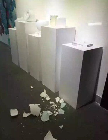 据说被摔碎的陶瓷的作者刘同学考虑到对方家境不好而放弃索赔,这没有问题,也传达了满满的正能量。但藉此希望刘同学及其他毕业生,以及以后的毕业生,懂得行使权力,用法律维护自己的财产;也希望各美术学院,以及全国众多的美术馆、展览馆、博物馆在改善硬件设施的同时,注重展览管理,加强展览的法律方案等软件建设,切合国家“法治”理念,打造高水平的艺术品展览馆;希望观众提高修养,文明看展。