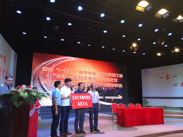 6月11日,湖南“一家一”助学就业·同心温暖工程暨“民进·玉和兰亭班”签约仪式在益阳广电演播厅举行。