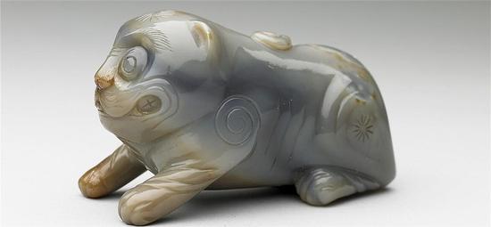 西安南郊何家村发现出土有白玉刻花羽觞、水晶杯、镶金牛首玛瑙杯等,传世品中尚能见到一些圆雕玉兽件,有件唐代玉雕骆驼,现藏于天津博物馆。