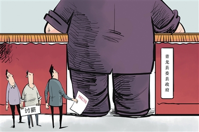 陕西岚皋县180余名农民工远赴河北青龙县一家矿业公司打工多年,遭遇1500万的巨额欠薪,多次和企业协商未果。获悉本县民工在外省市打工遭遇欠薪等不公后,岚皋县县委县政府派出由政法委、司法局、公安局等组成的工作组,远赴河北省青龙县和当地县委县政府主要领导交涉解决。然而,工作组连续两个工作日被拦在政府大门之外。(6月15日《法制晚报》)