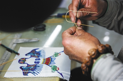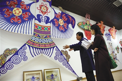 李家坟村乡情村史陈列室,老手艺人吴同泰正向观众介绍风筝历史。