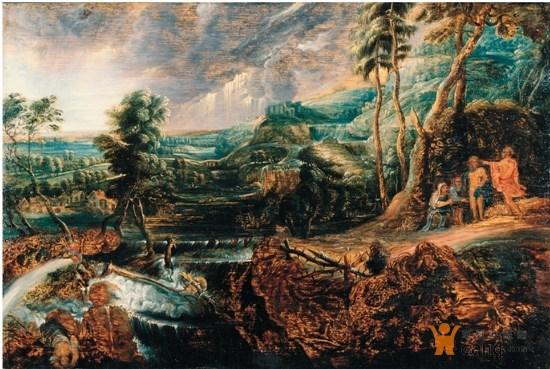 鲁本斯 费莱蒙和鲍西丝在暴风雨过后 41.5×62cm 木板油画 1620-1625年