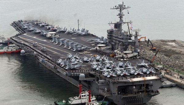 美国海军作战部长、海军上将约翰·理查德森告诉一所华盛顿智库:一般情况下,同一水域不经常出现两个美军航母战斗群,此次两艘美军航母的联合行动标志着美国政府对东亚地区的安全承诺。