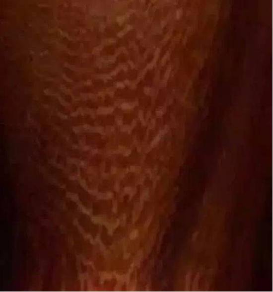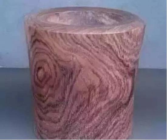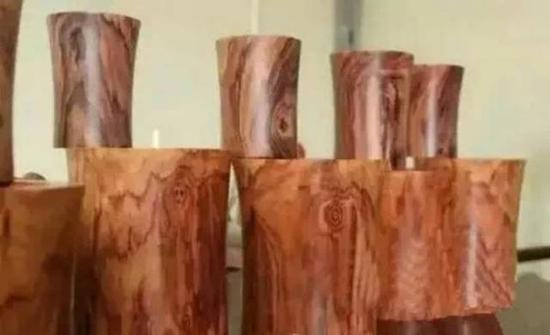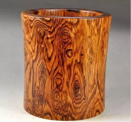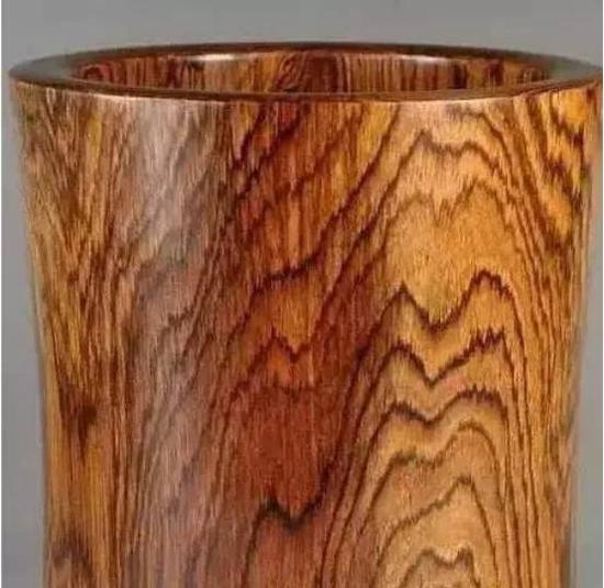 一是看纹理。白酸枝一般有明显的鸡翅纹,就像鸡翅木的那种纹理,而海黄是不可能有鸡翅纹的。下面看看笔筒的鸡翅纹,露马脚了吧。