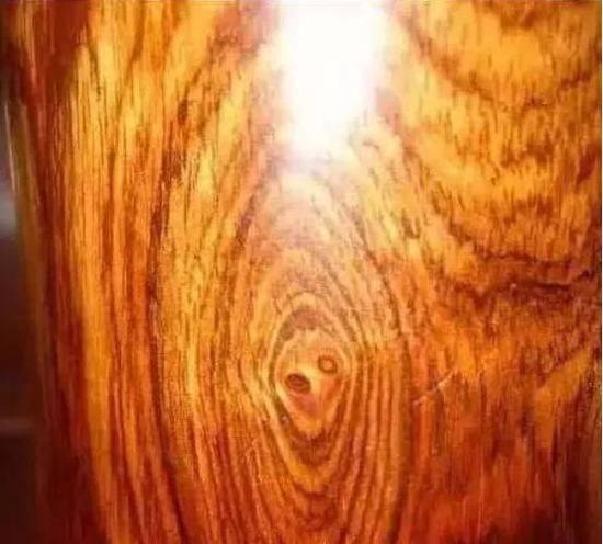 ?;莆评碇刑乇鸬湫途褪呛;频摹肮砹场蔽?,也就是海黄的树结处产生的一种特有纹理,这种鬼脸纹,我觉得叫“鬼眼”似乎更为贴切,就像一只只有神的眼睛在盯着你看一般。这种鬼眼,其他红木如红酸枝的树结处也会产生。当然,也不是每个?;破魑锒蓟嵊泄硌?,这个和取材部位等有关。