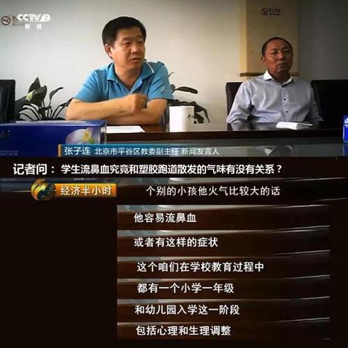 但记者从下午一点开始一直等到下午5点半,进行平谷区第六小学操场改造工程的施工单位北京金通远建筑工程公司,始终没有出现。随后,平谷区教委教委 副主任向记者出示了一份《关于平谷六小操场异味处理的进展情况》的说明,在这份说明上,详细记录了该校部分学生的健康状况。平谷六小共1514名学生,近 一个月来出现过流鼻血症状的学生25人,到医院诊治过的学生11人。学生流鼻血究竟和塑胶跑道散发的气味有没有关系呢?平谷区教委副主任给记者进行了这样 的解释。