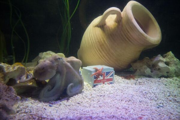 据台湾“中央社”6月22日报道,英国23日将公投决定是不是要脱离欧盟(EU),在投票前,曼彻斯特一家水族馆请出有“通灵”神力的章鱼哥“奥托”(Otto),结果章鱼大师开示说:英国会留在欧盟。