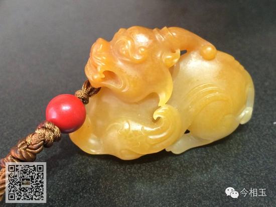 首先说说小玉件的打孔拴绳:除了要让玉件很端正地佩戴,拴绳的位置还要考虑总体效果。动物题材的雕件有三个位置是拴绳的敏感部位,应尽量回避:动物的嘴、脖子和尾巴。把绳拴在嘴的位置,总会让人想到江湖牙医拔牙的情景:用细绳一端拴在病人的牙上,另一端拴在桌角……所以尽量不要把绳拴在动物或瑞兽的嘴上。
